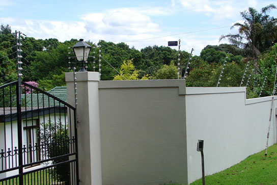 We install free standing electric fencing, and wall top mounted electric fencing. Electric fencing is a very cost effective way to secure your family and property, drawing minimal power, the system comes with a battery back up option in the event of a power failure. Electric fencing is a excellent physical barrier, and makes would-be intruders think twice before trying to gain entry. The system can be zoned, and alarmed - thus alerting you to any tampering, cutting of wire and shortages. It can be linked to your existing alarm, and a GSM unit, which will alert you via sms of any tampering.